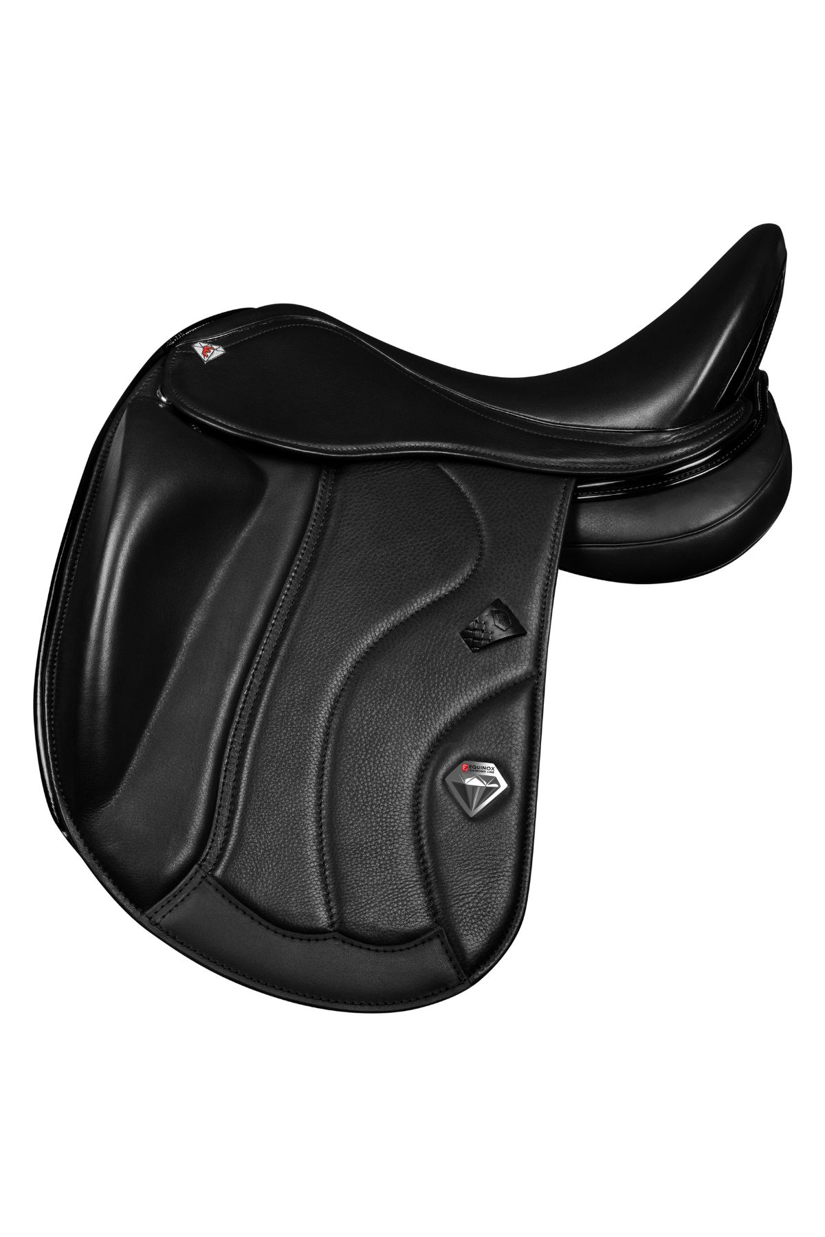 Siodło EQ EC2 Diamond to eleganckie siodło ujeżdżeniowe, które łączy klasyczny styl z nowoczesnym komfortem i precyzją. Głębokie siedzisko wspiera stabilizację jeźdźca, zapewniając optymalną pozycję i skuteczną komunikację z koniem. Szerokie panele równomiernie rozkładają nacisk, gwarantując wygodę i swobodę ruchu konia. Wyprofilowane klocki kolanowe zapewniają dodatkowe wsparcie i kontrolę, czyniąc to siodło idealnym wyborem zarówno na codzienne treningi, jak i na zawody.