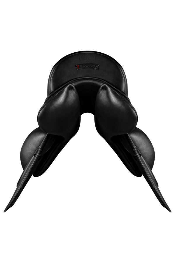 Dzięki szerokim, anatomicznie ukształtowanym panelom, siodło równomiernie rozkłada nacisk na grzbiet konia, eliminując punkty ucisku i zapewniając maksymalny komfort. Taka konstrukcja pozwala na pełną swobodę ruchu konia, co jest kluczowe w precyzyjnym wykonywaniu figur ujeżdżeniowych. Starannie wyprofilowane klocki kolanowe wspierają prawidłowe ułożenie nóg, pomagając jeźdźcowi w zachowaniu stabilnej pozycji i precyzyjnego dosiadu. Możliwość wyboru wypełnienia poduszek – między sztuczną watą a naturalną wełną – umożliwia idealne dopasowanie siodła do indywidualnych potrzeb konia i jeźdźca.