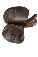 W tym siodle zastosowany został system paneli łopatkowych dla koni z mocno wystającą łopatką tak aby nie dochodziło do ucisku w tym miejscu. Szerokie panele lateksowe siodła zostały zaprojektowane tak, aby równomiernie rozkładać nacisk na grzbiet konia, eliminując punkty ucisku i minimalizując ryzyko dyskomfortu. Dzięki temu koń może swobodnie się poruszać i wykazywać pełnię swoich możliwości w skokach. Panele w tym modelu są cieńsze by osiągnąć jak najbliższy kontakt z koniem “tzw. close contact” Wyprofilowane klocki kolanowe i łydkowe mocowane na rzep umożliwiają dopasowanie indywidualne do preferencji jeźdźca, zapewniają dodatkowe wsparcie, pomagając jeźdźcowi utrzymać optymalną pozycję i pewność w siodle.