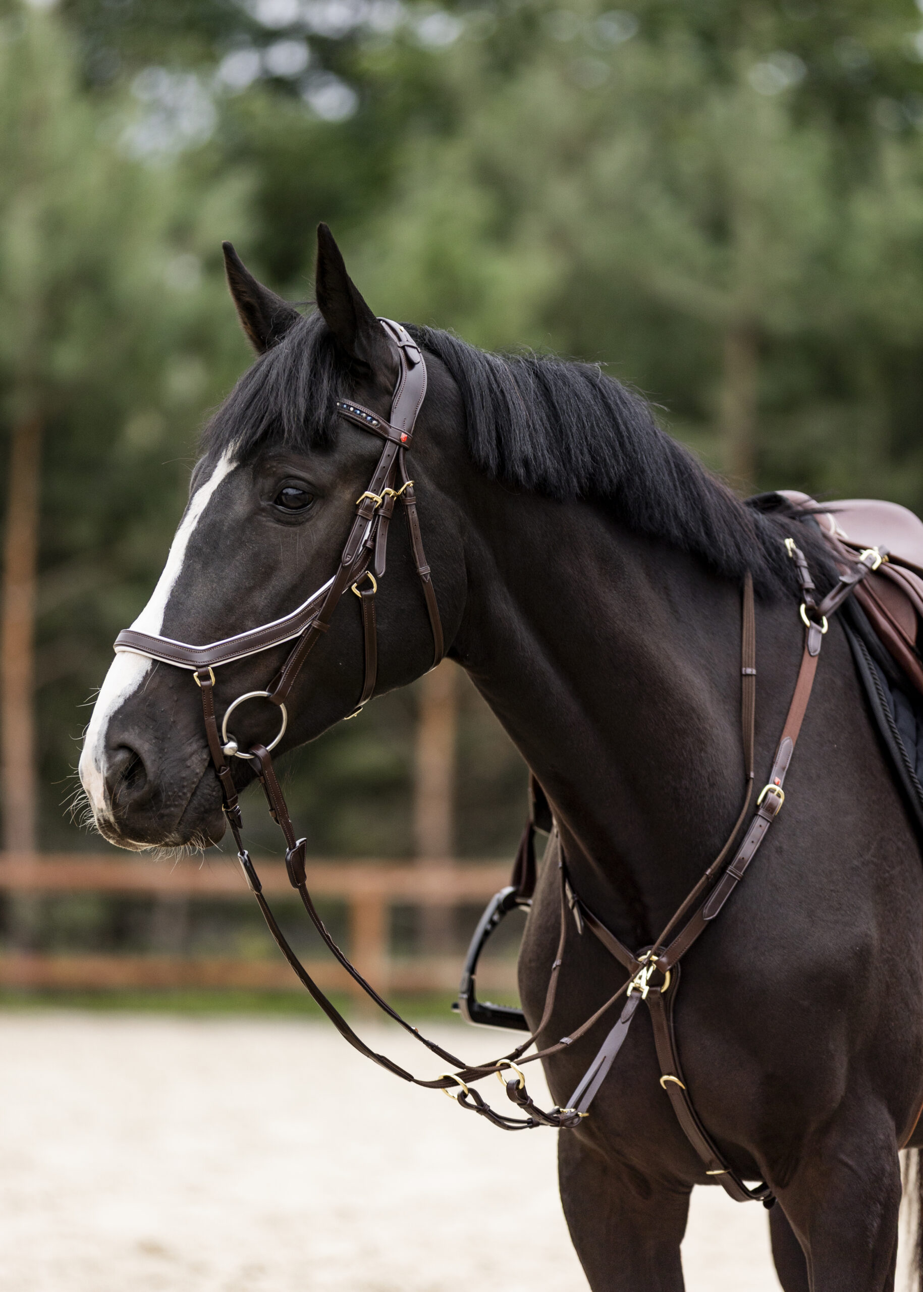 Dzięki zastosowaniu specjalnego paska na ganaszach ogłowie leży stabilniej niż modele, w których zastosowano paski podgardlane.